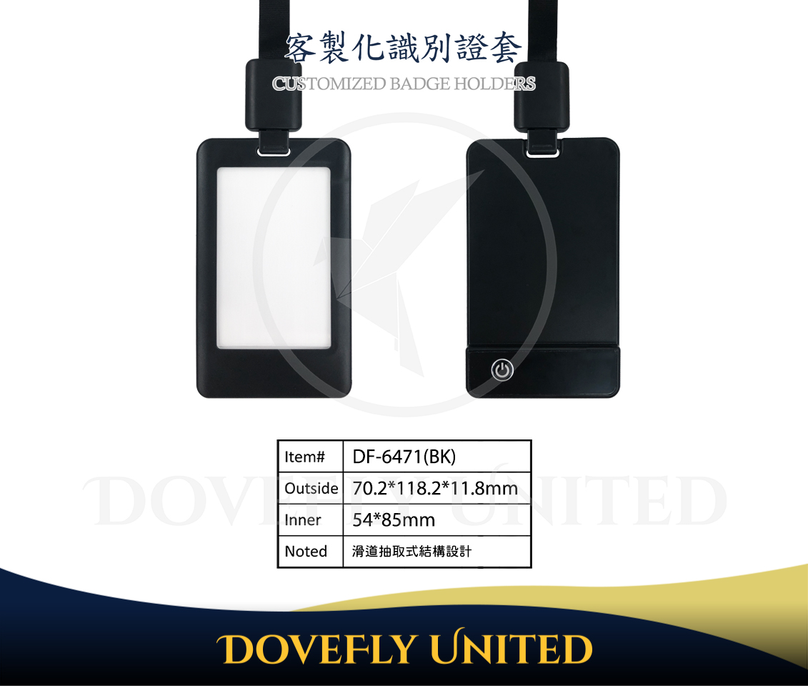 LED七彩可發光 充電式發光卡套 展場證件套卡套 識別證套殼 搭配織帶 (直式) DF-6471(BK)