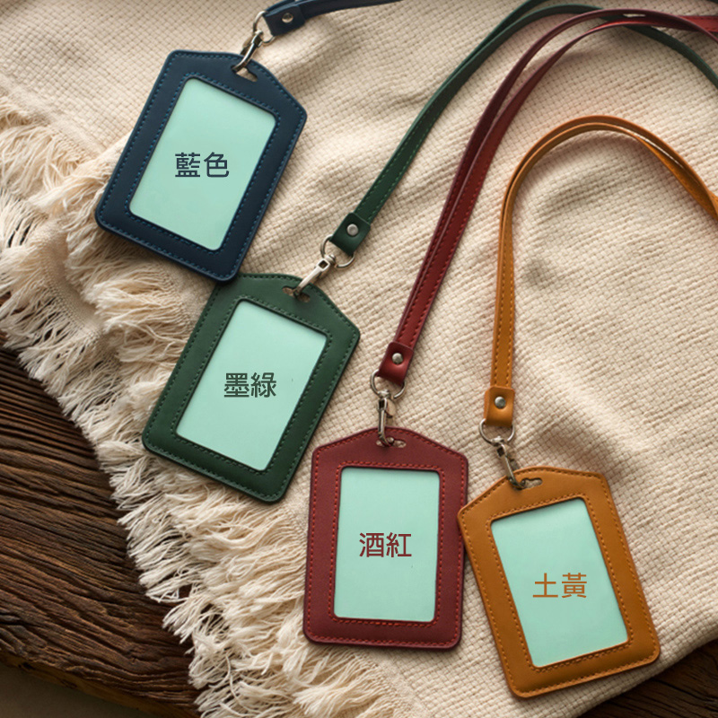 - 真皮皮革直式/橫式識別證套 搭配皮革識別證帶 套組