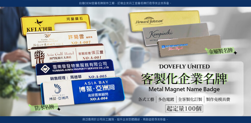 開瓶器、冰箱磁鐵 、皮帶扣 、警徽 、軍牌、吊飾、獎章、車標、袖扣、領帶夾、領徽、胸針、企業名牌、文創小物、其他金屬產品