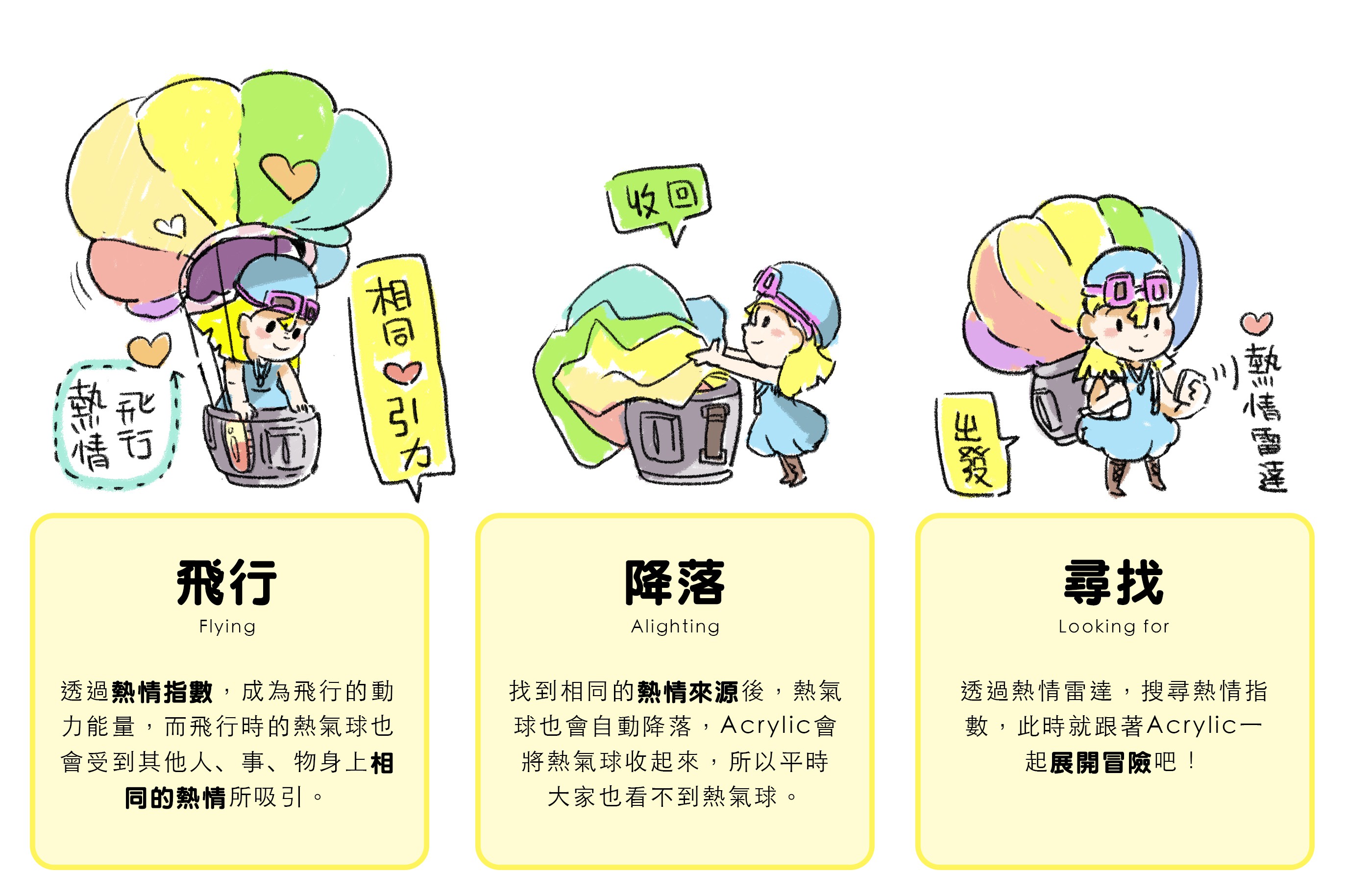 ACRYLIC搭著自己的熱氣球,到處隨著風旅遊,熱氣球總會飛到充滿熱情與夢想的人們身旁,無關乎城市的大小或繁華與否。