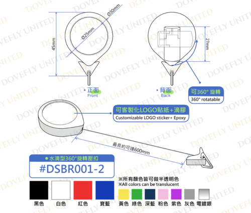 30mm 防旋轉大面積LOGO水滴型易拉扣 (標轉背夾) (#DSBR001-1)