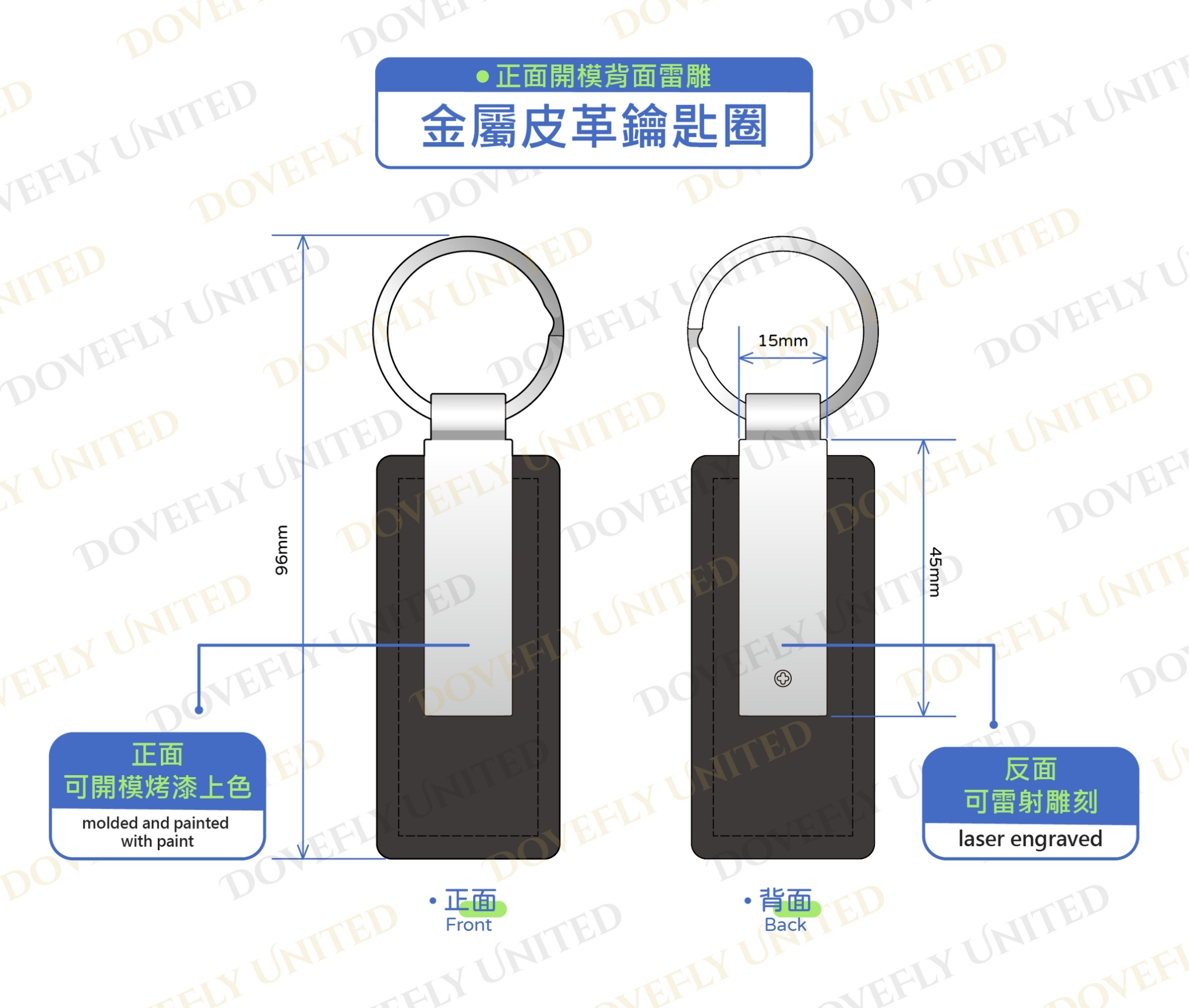 正/反面雷雕 品牌金屬皮革鑰匙圈 精品金屬鑰匙圈開模訂製 金屬工廠推薦