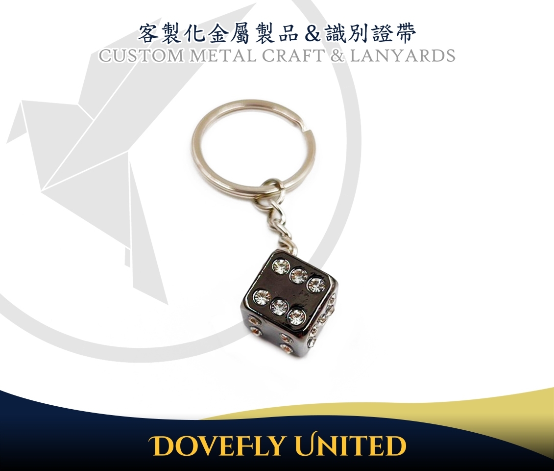 骰子造型 全立體造型金屬骰子 搭配水鑽 訂製生產 金屬鑰匙圈訂製工廠