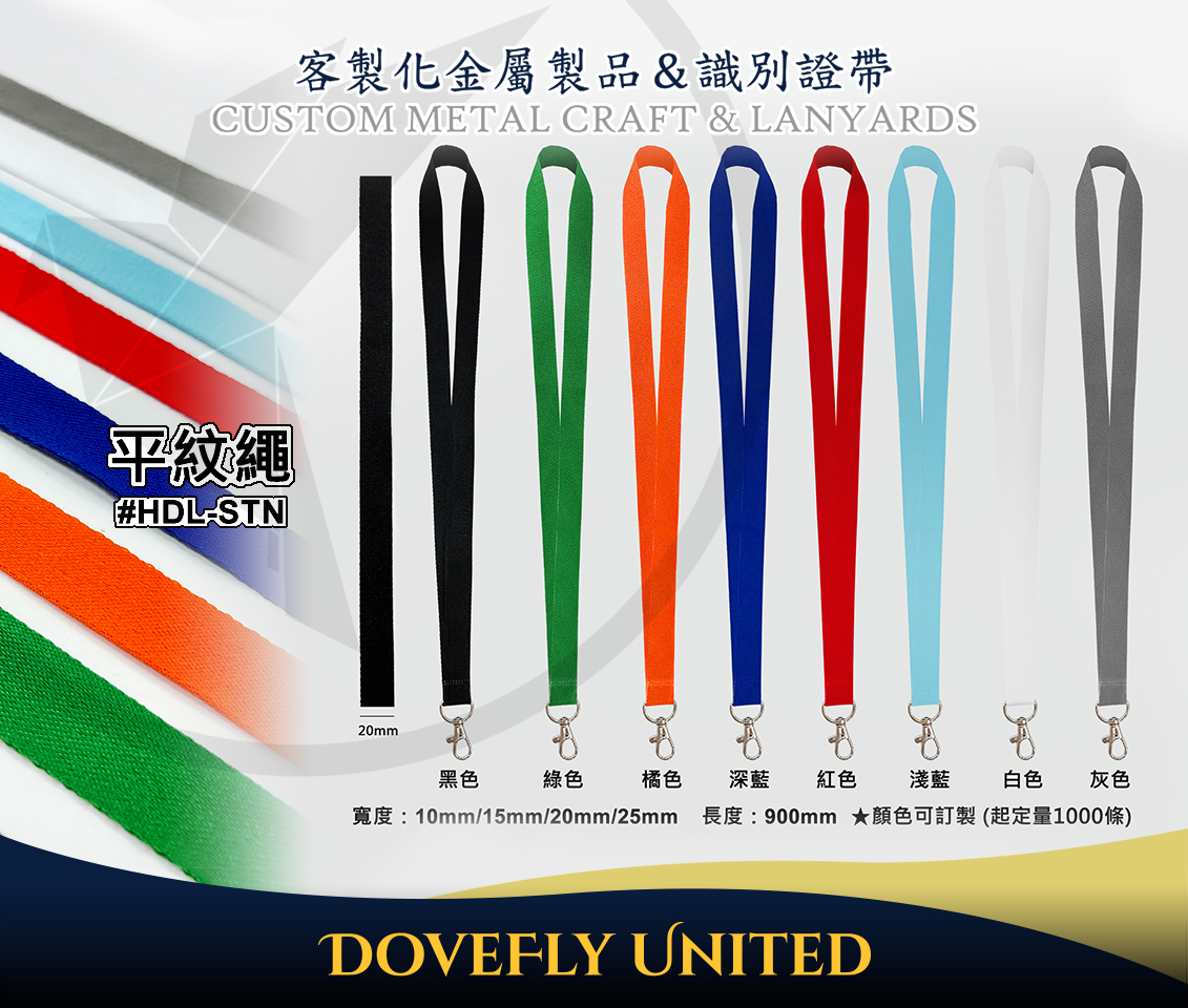 素色證件帶掛繩批發 10/15/20/25mm 高速帶 平紋繩 (#HDL-STN)