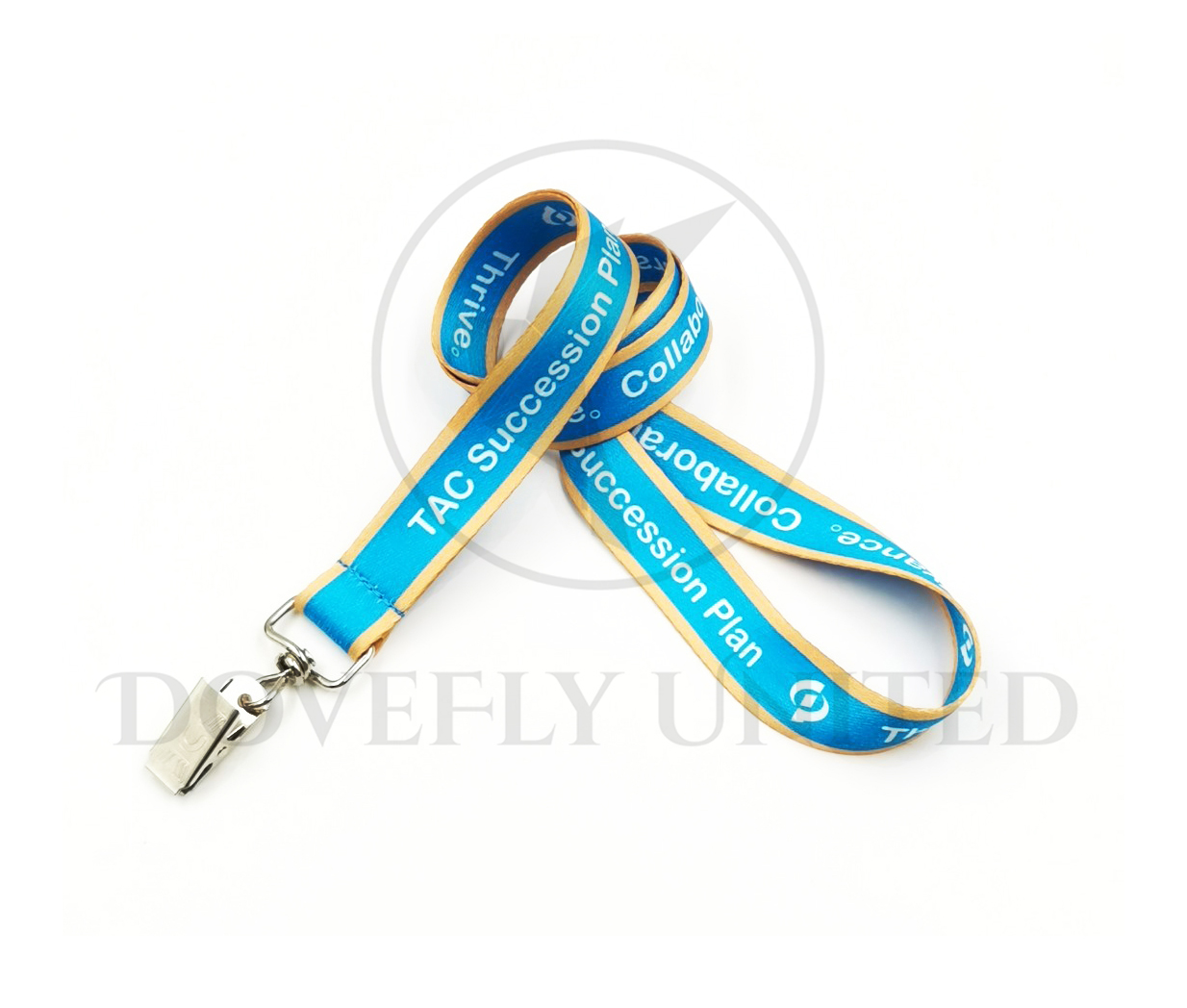 • 100%客製生產,全彩印刷,依客人指定色號專業染色,可打樣對色德弗聯合專業客製各種類織帶、識別證件帶批量生產印刷證件帶+卡套定製+伸縮扣(溜溜球)訂做多種材質識別證帶訂做,符合各種需求專業訂製常見企業最常用員工證件高速帶、高級尼龍帶、漸層圖案柔軟熱轉印帶