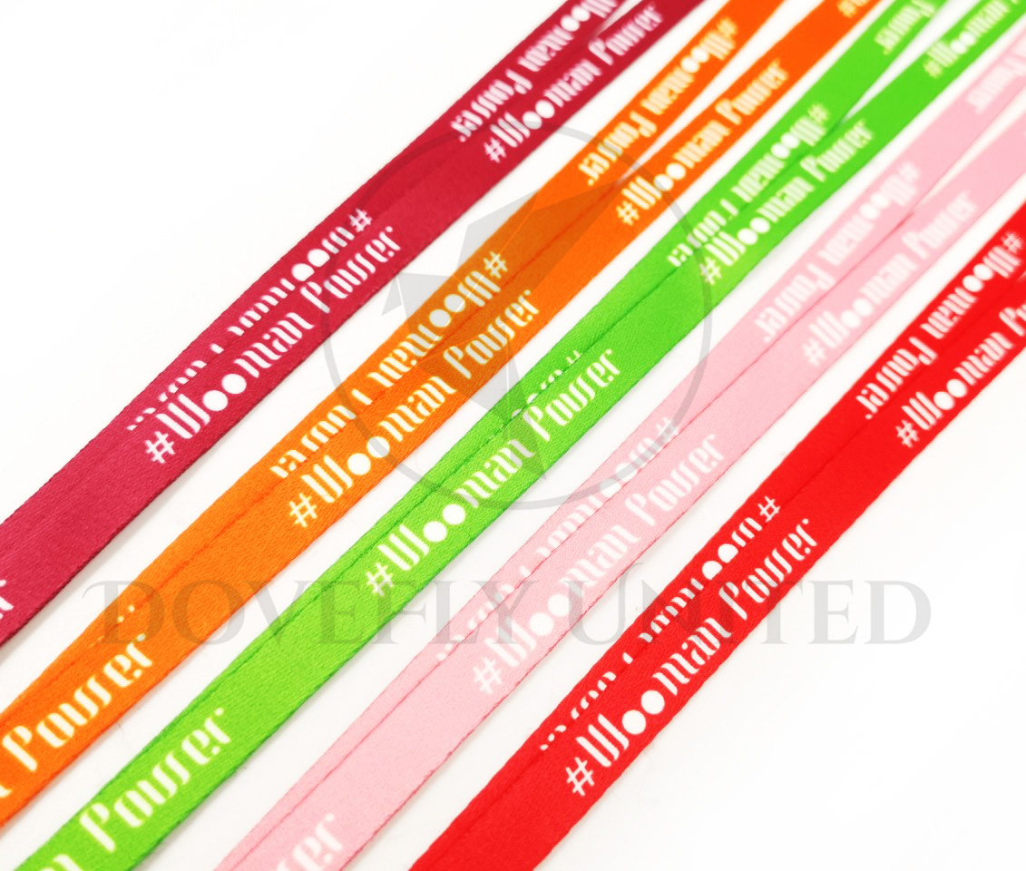 • 100%客製生產,全彩印刷,依客人指定色號專業染色,可打樣對色德弗聯合專業客製各種類織帶、識別證件帶批量生產印刷