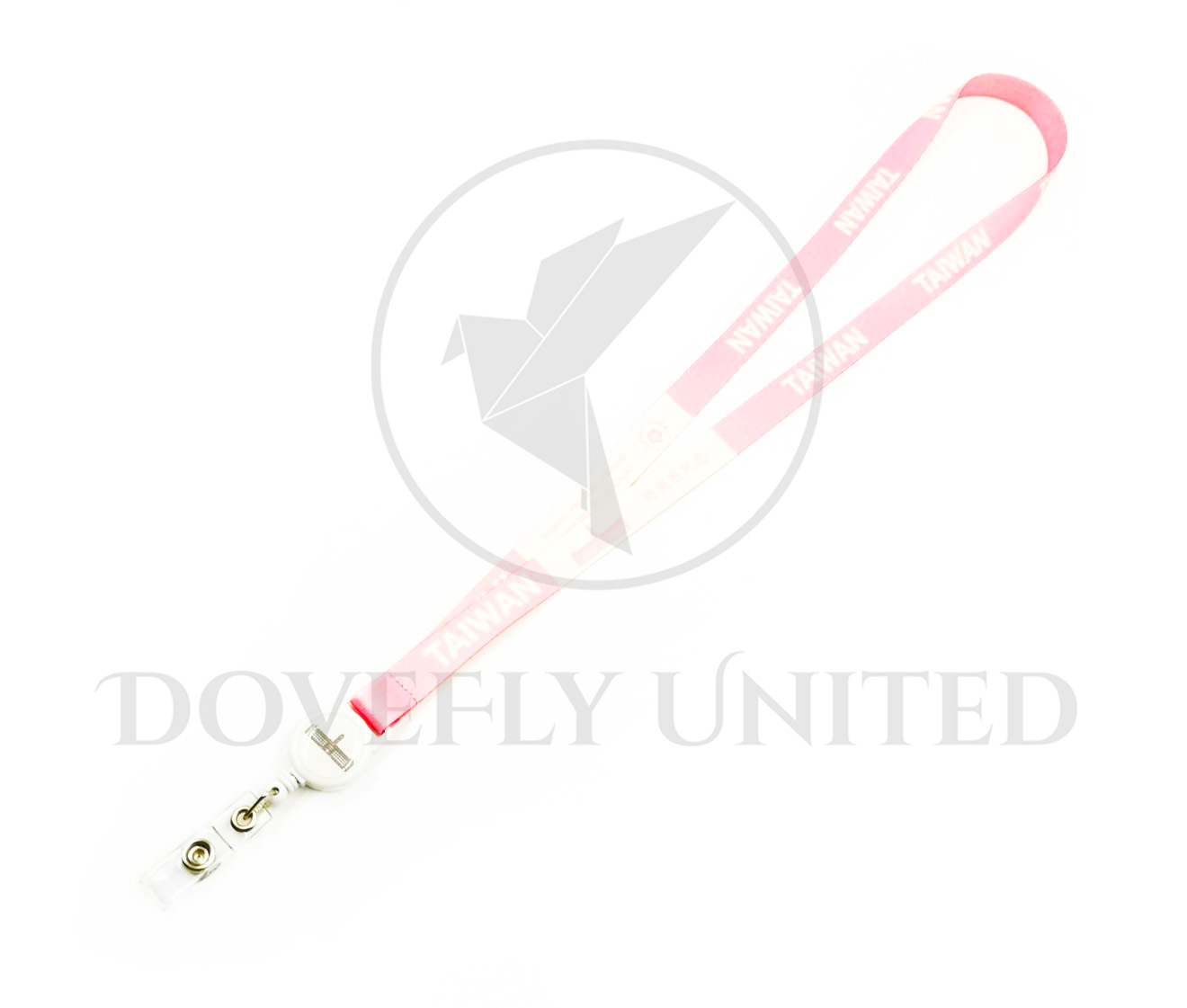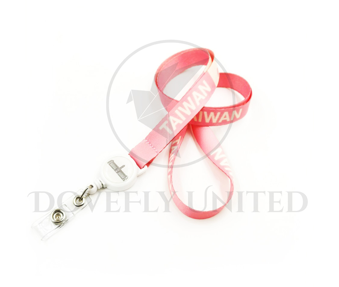 台灣織帶工廠訂製推薦 熱轉印刷證件帶 識別證伸縮扣環印製 (#HTP15-77NM+#RBR018)