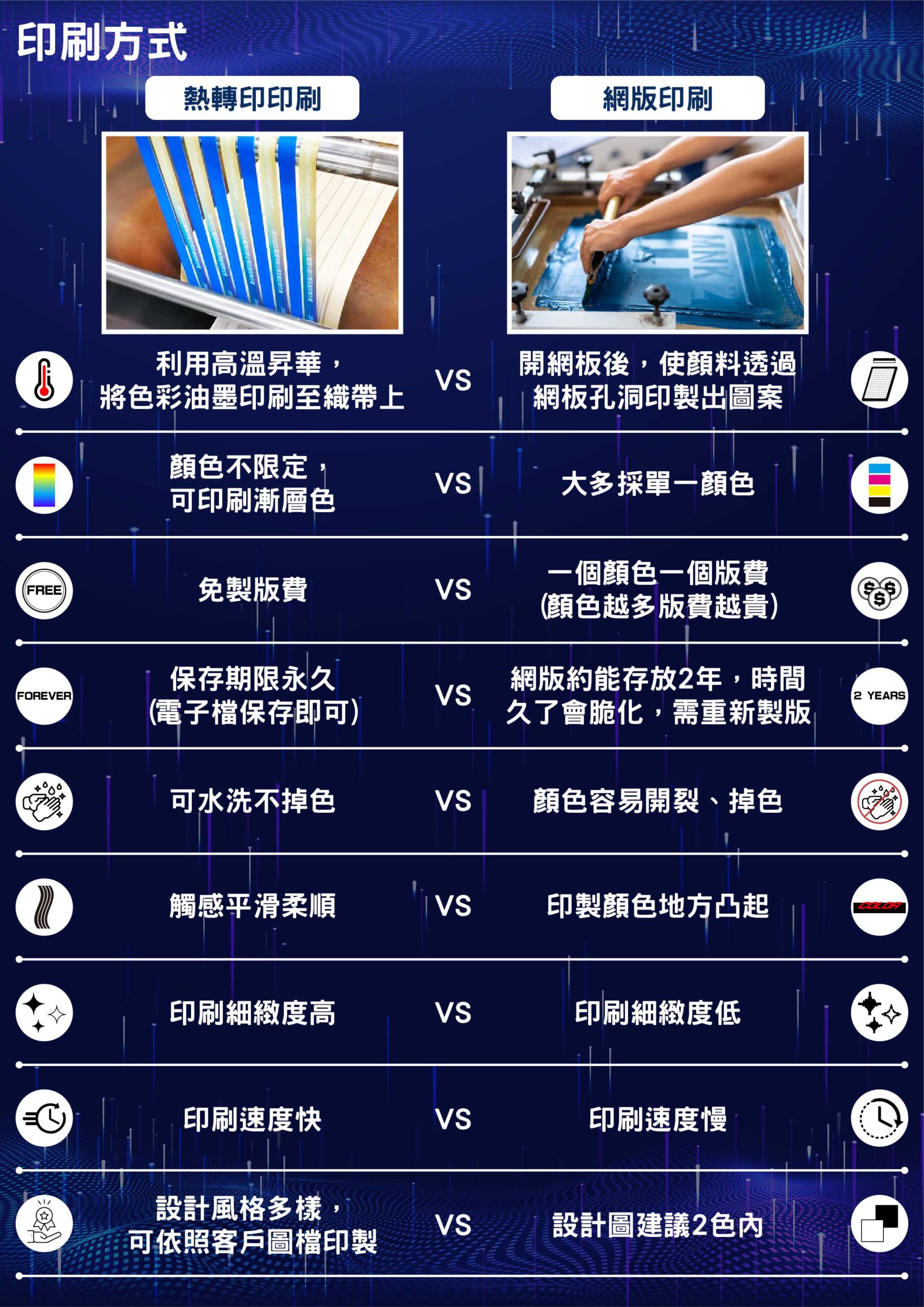 因客製熱轉印帶觸感細緻,表面光滑,佩掛起來舒適,深受企業主信賴推薦製作