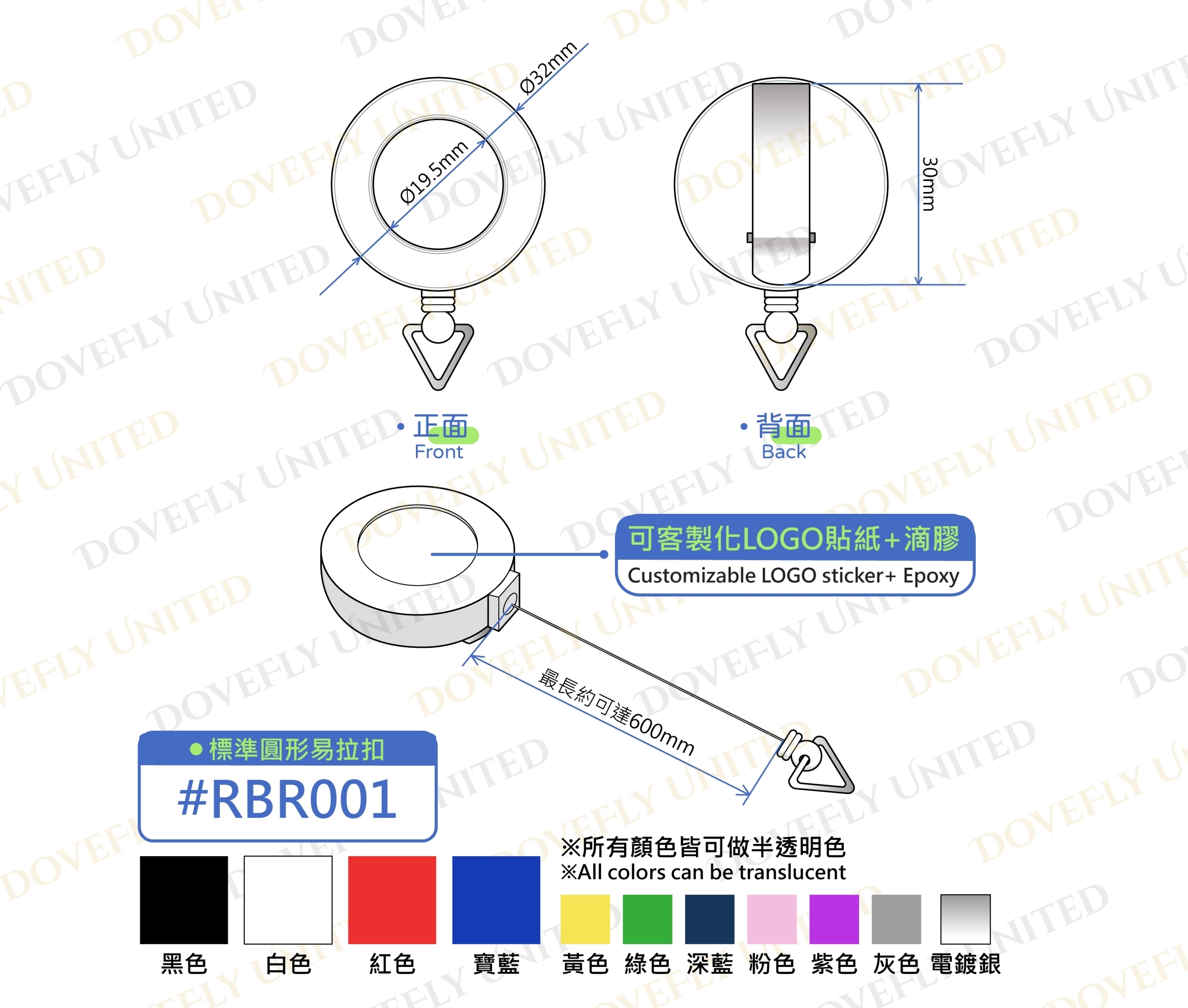 0.0 客製化LOGO32mm圓形證件伸縮扣環 (標準背夾) (#RBR001)